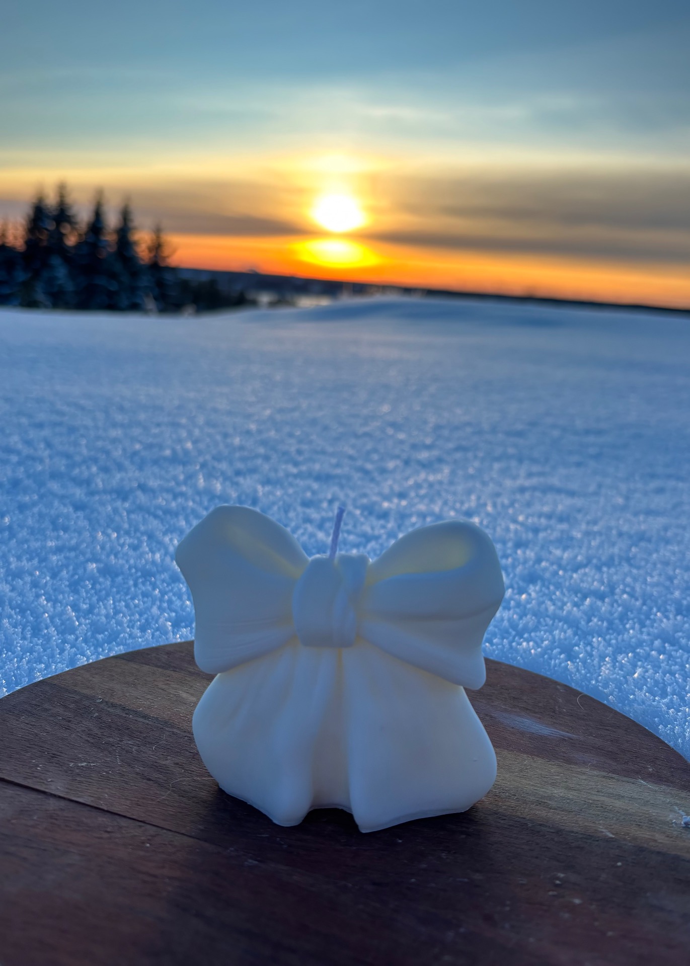 Ljus format som en fin rosett. Gjorde av en vaxblandning på sojavax och stearin.